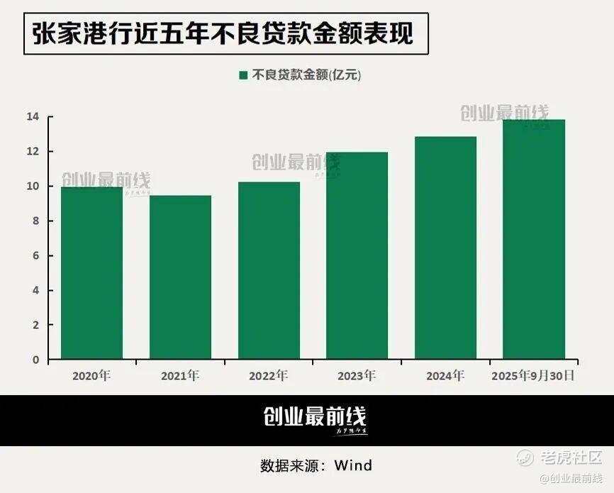2020年至2024年,该行不良贷款余额分别实现9.95亿元、9.44亿元、10.22亿元、11.93亿元及12.84亿元,截至2025年9月末,张家港行不良贷款余额较上年末增加0.97亿元至13.81亿元。