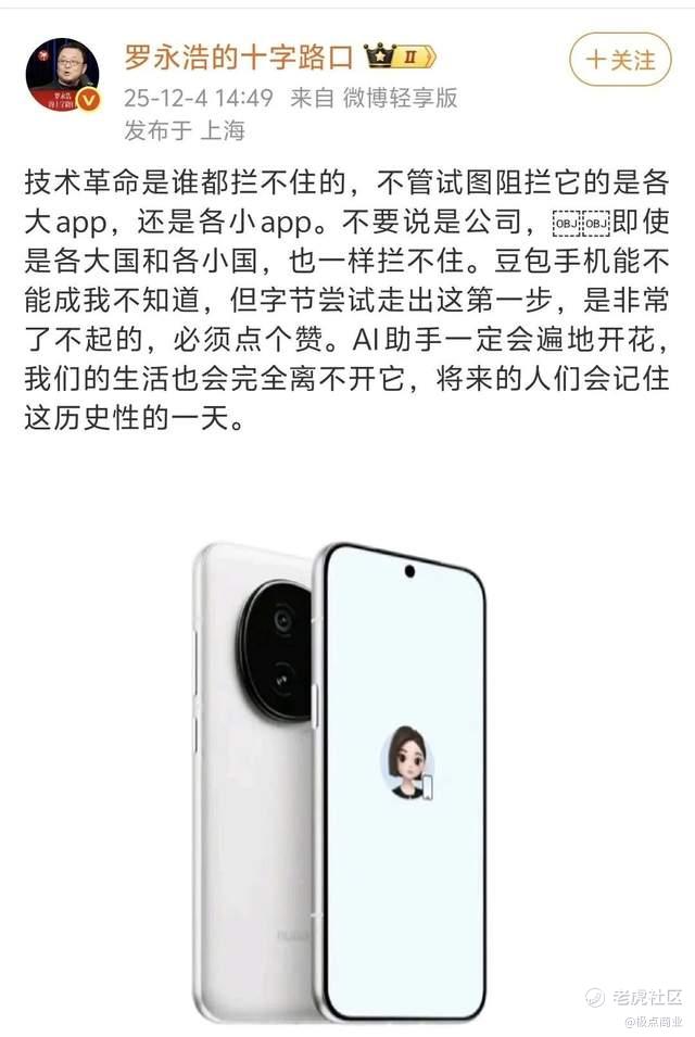 在这个AI重塑万物的时代,豆包手机助手掀起的波澜,本是一场关于未来AI时代“核心入口”主导权的争夺战。这场战争已不仅限于软件应用层面,更深入到操作系统、硬件终端乃至整个手机行业生态。