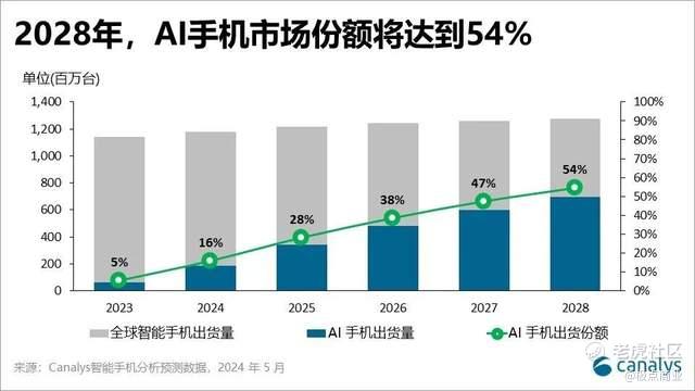 但在智能体时代,AI与硬件深度融合被视为下一个“iPhone时刻”。据canalys预测,到2028年,全球AI手机占智能手机出货量的比例将增长到54%,未来手机可能不再需要用户点开一个个App,而是通过智能体直接获取结果。