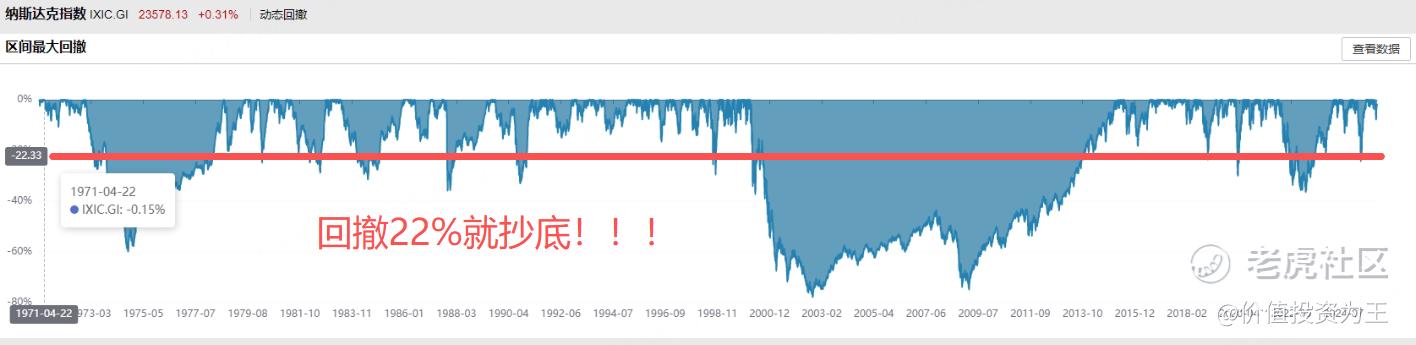之所以把抄底目标定在回撤22%,是根据历史回撤数据,22%是既不错过抄底机会,又不会过早入场。