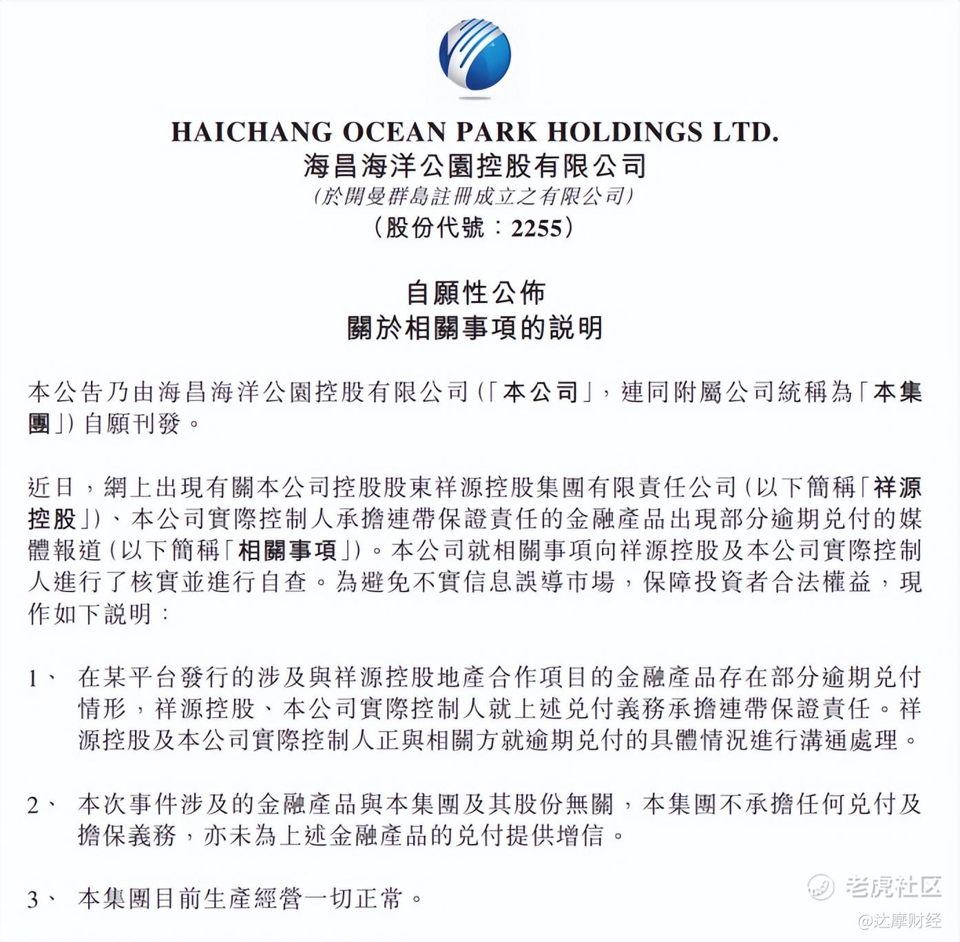 12月7日晚间,祥源文旅、交建股份、海昌海洋公园针对前述事项同步发布声明,确认了存在部分金融产品兑付逾期的情况,并表示上市公司不承担任何兑付及担保义务。