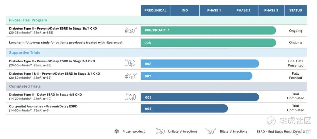 公司开发的rilparencel疗法目前开展治疗中度至重度糖尿病肾病的晚期临床试验,并于2021年,获得了FDA的再生医学高级疗法(RMAT)。