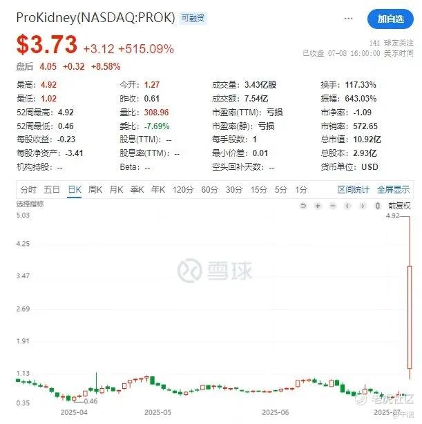 数据发布当日,公司股价大涨515.09%,而在2022年至2024年,公司股价持续下跌,累计跌幅达82.96%,市值最低不足5000万美元,ProKidney为何在一夜之间实现逆袭?