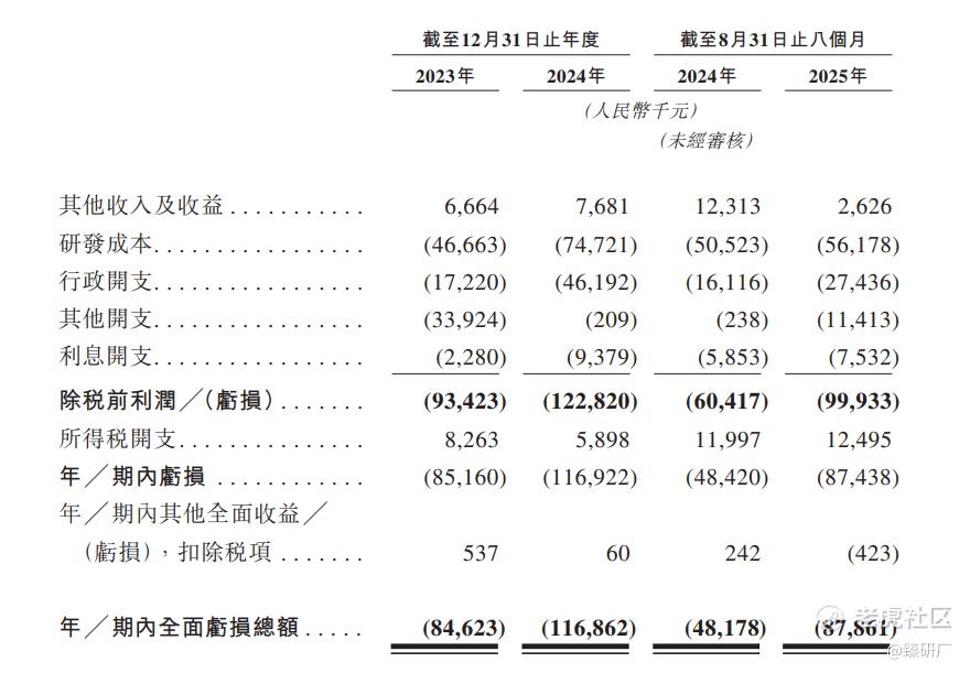研发成本呈现持续增长态势。2023年至2024年,由人民币4,670万元增加60.1%至人民币7,470万元,增长主要源于核心产品HX009、HX044、HX301及HX111临床试验的CMC成本上升、HX044及HX111临床前毒理学检测开支增加以及自供应商采购的材料(含HX301的活性药物成分及HX044、HX111的原材料)数量增长,带动材料消耗开支增加。2024年8月31日止八个月至2025年8月31日止八个月,由5,050万元增加11.2%至5,620万元,增长主要由于HX009、HX044及HX111临床试验的CMC成本增加、研发人员平均薪酬及人数提升,以及股份激励相关开支增加700万元。