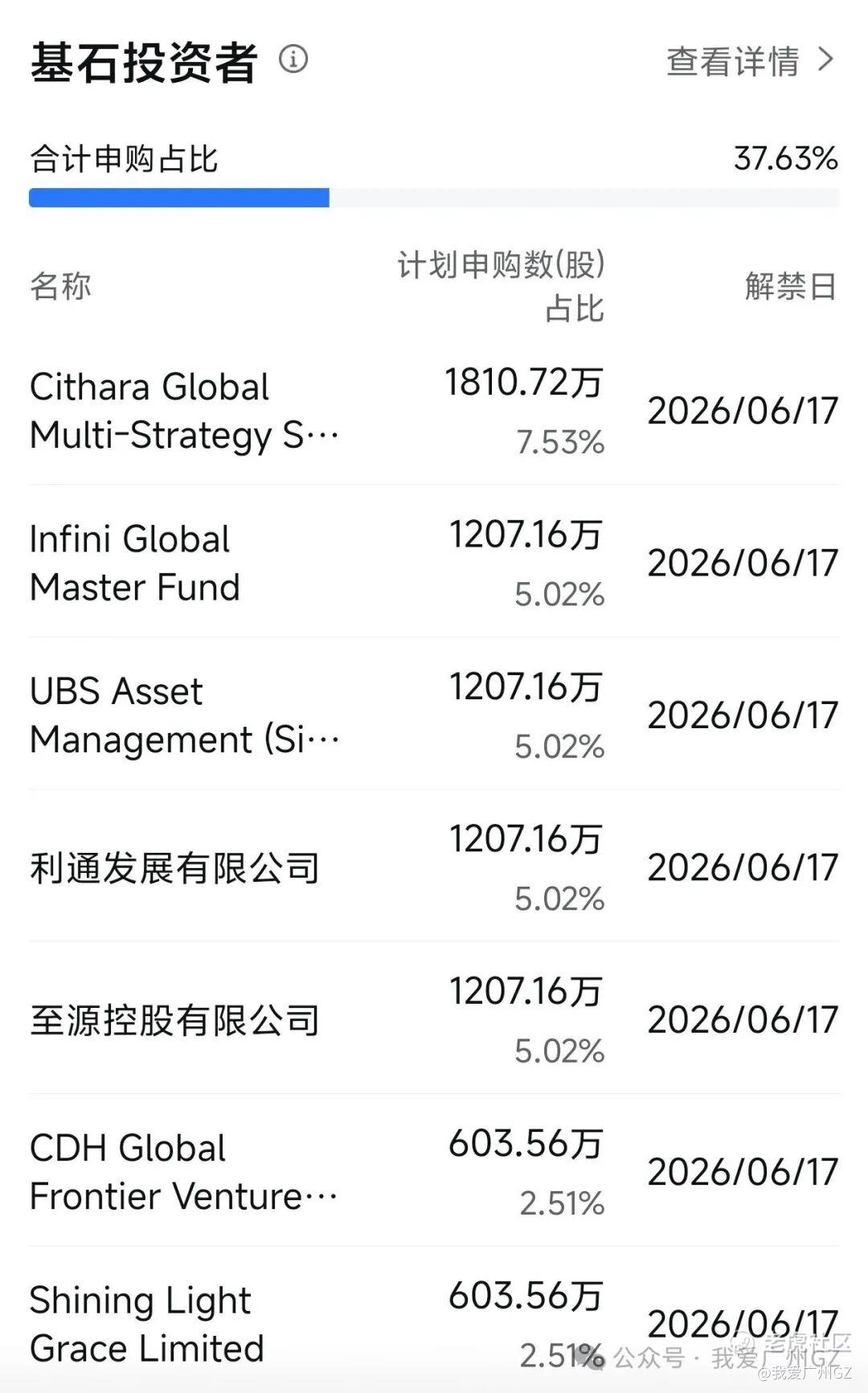 UBS AM (瑞银)、CDH (鼎晖)、Infini(量化巨头)、Shining Light Grace