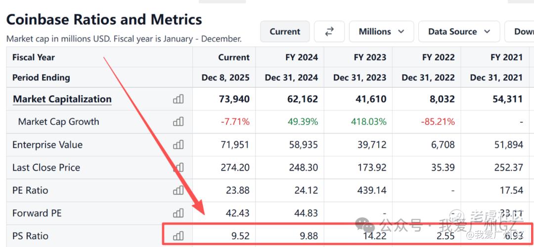 Coinbase (COIN.US):美股合规龙头,市值750亿,PS也就10左右......