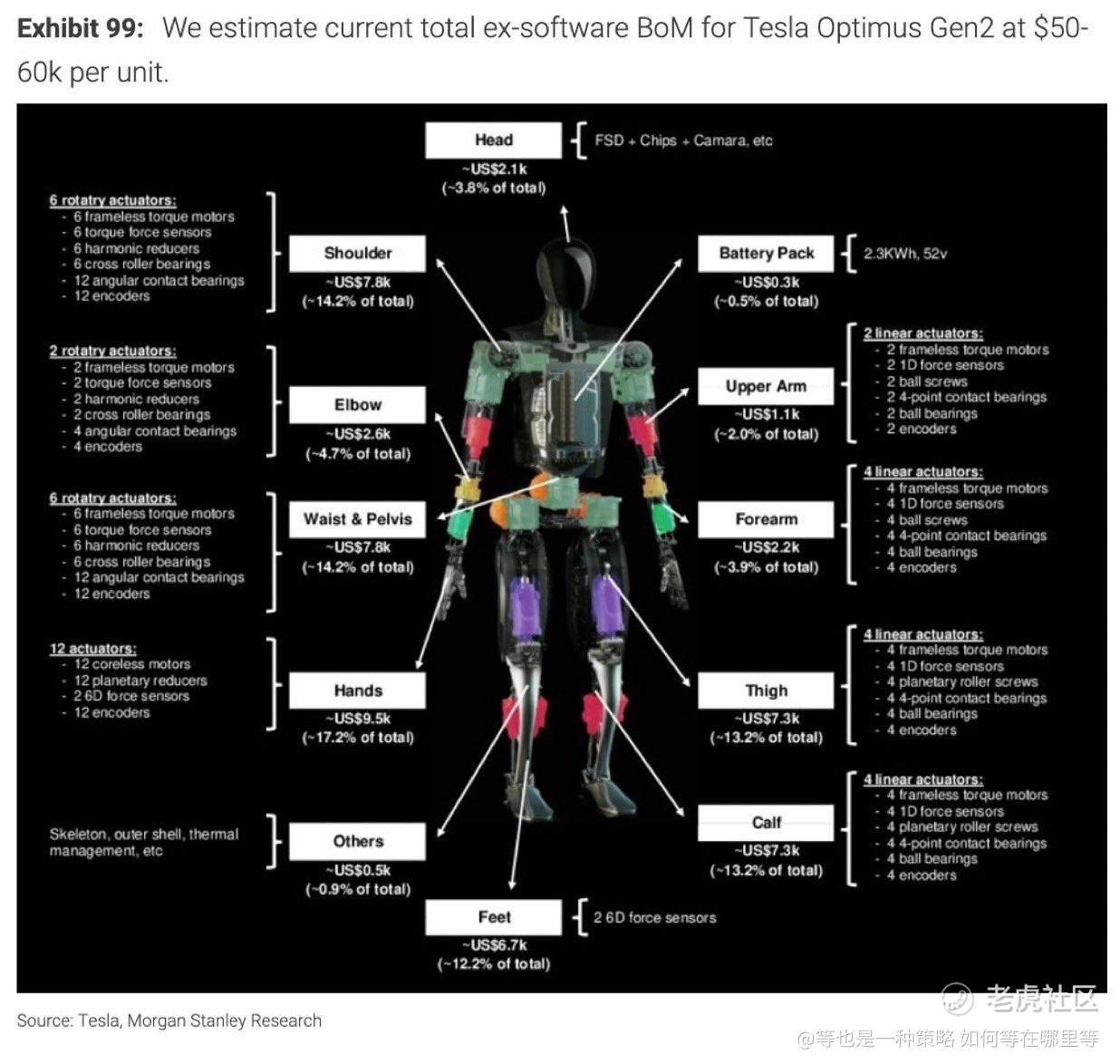 $TSLA Optimus Gen 2 的硬件成本约为每台 5 万至 6 万美元。