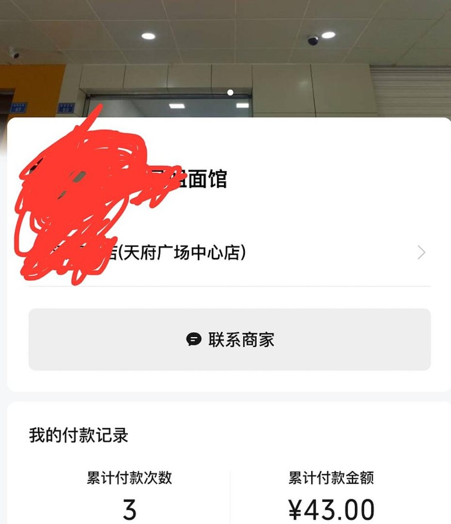 这是我在成都调研,住在天府广场附近宾馆时,对面一家面馆的消费记录,消费3次,平均14元,吃的基本是抄手、豌杂面这些。