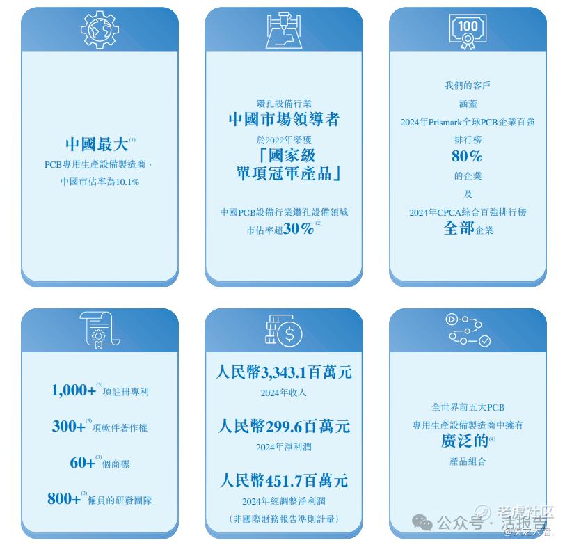 公司拥有全球PCB专用设备行业最广泛的产品组合,覆盖钻孔、曝光、压合、成型及检测等几乎所有PCB生产主要工序。公司的客户涵盖2024年Prismark全球PCB企业百强排行榜80%的企业。