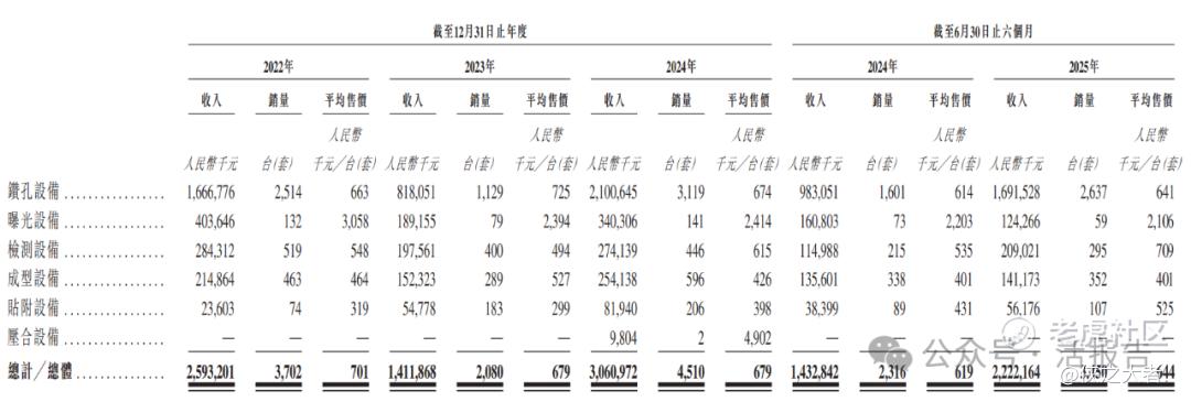 公司产品于所示年度按PCB生产工序划分的收入、销量及平均售价(不含税)详情: