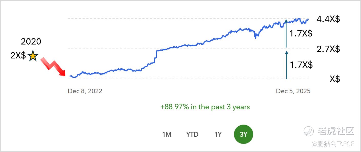 过去 3 年肥猫年化约 23.6%。虽然不如网上那些“一夜十倍股神”,但胜在真实、可持续、睡得着觉。(账户总额包含每个月不断投入的资金,所以整体看起来翻了4倍多。)