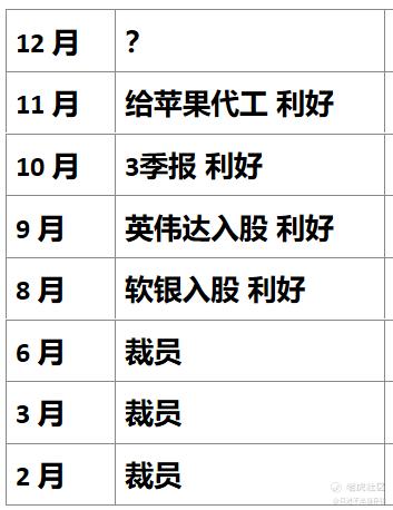 $英特尔(INTC)$ 前面每月都有利好消息,11月份底出了苹果代工的利好消息,现在到12月份了,还会有利好消息吗?
