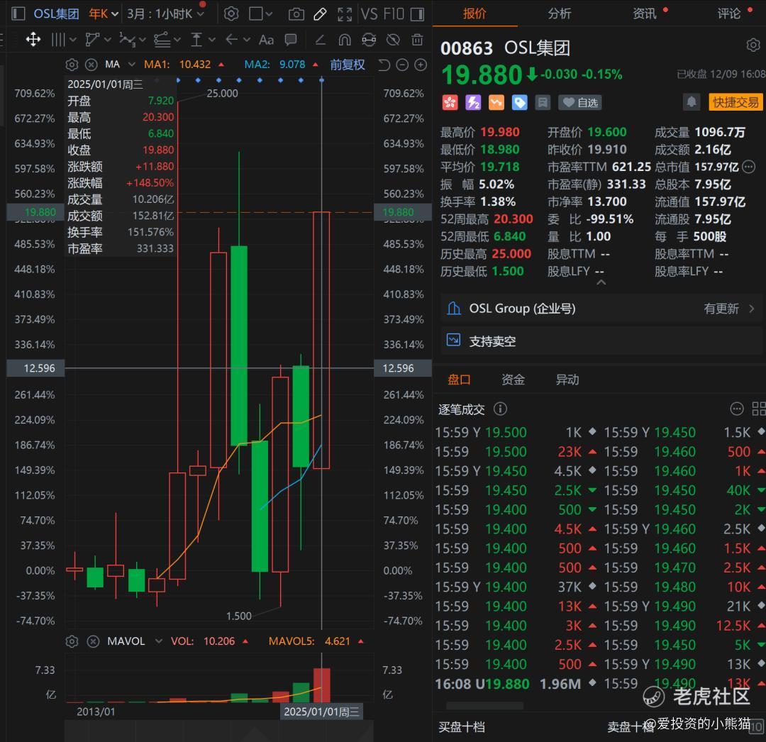 主要是交易所这个东西吧,市场谁会买啊?币圈的炒新客嘛?内资不可能违背zc的,大的国内基金肯定不敢买的。国内没长线机构敢投吧?至少国资不会碰的,毕竟不可能和zc作对,海外机构能有几个看得上就不好说了,如果海外机构看不上的,这个票只能给对冲基金了。另一个正在冲击港股通门槛的票osl,今年已经涨了150%!