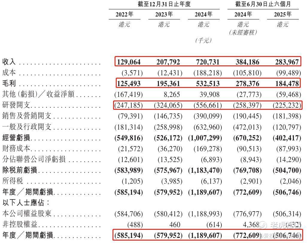 净利分别约为港元-5.85亿、-5.80亿、-11.90亿、-7.73亿、-5.07亿,2025年前8月同比-34.41%;