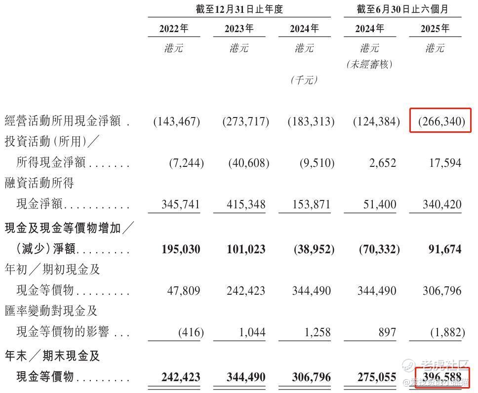 截至2025年6月30日,公司账上现金有3.97亿港元,经营活动现金流为-2.66亿港元。