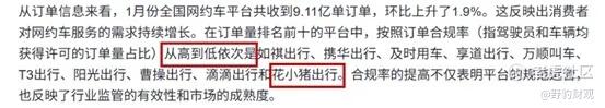 据千际投行发布的《2024年中国网约车行业研究报告》,订单量前十的平台中,花小猪的订单合规率垫底。早在2020年,花小猪就因未取得北京等地的运营资质,被多地交管部门约谈叫停。尽管后期花小猪接入滴滴的合规司机体系,但在下沉市场,仍有部分无证司机通过宽松审核入驻,导致服务质量参差不齐。