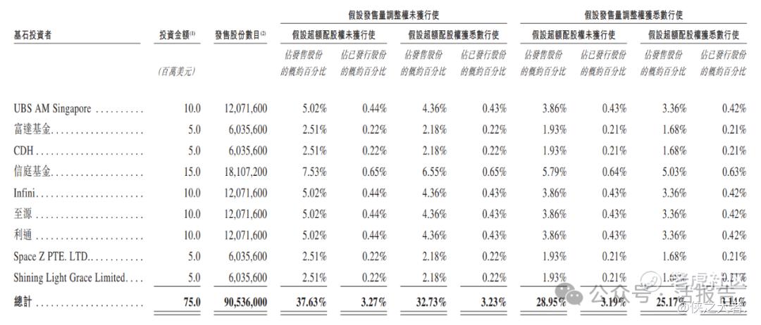 按招股中间价6.45港元计,公司募资总额约15.52亿港元,本次发行采用机制B分配方式,公开发售固定占10%,无强制回拨。国配部分约占13.97亿港元,其中有9家基石投资者参与,包括UBS、信庭基金、无极资本、至源控股、鼎辉投资等,合计参投约5.84亿港元,占全球发售的37.63%。