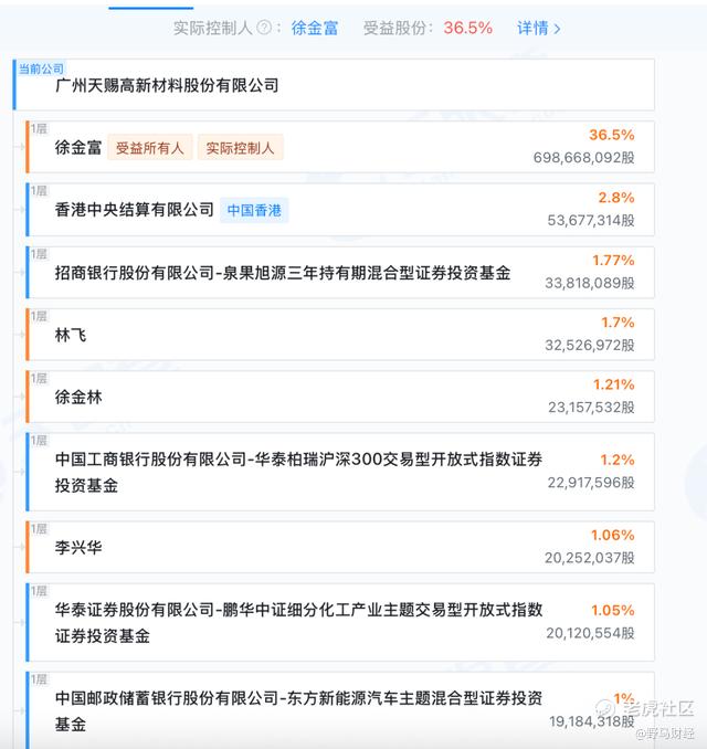 天眼查显示,徐金富持有公司股票6.99亿股,占总股本的36.5%,为公司第一大股东。