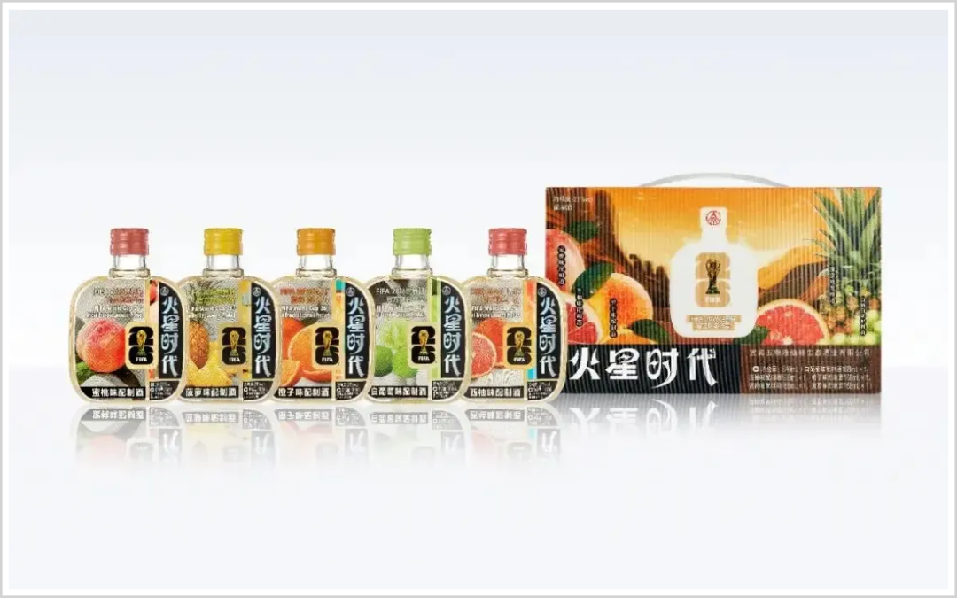 火星时代美加墨世界杯官方联名果味小酒,则融入白葡萄、蜜桃、西柚、菠萝、橙子五种自然果香,关注年轻消费群体及女性球迷需求,是口感轻盈、风味清新的“微醺快乐水”。