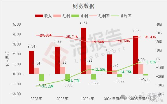 净利分别约为人民币-0.73亿、-0.68亿、-0.56亿、-0.29亿、-0.14亿,2025年前6月同比-52.36%;