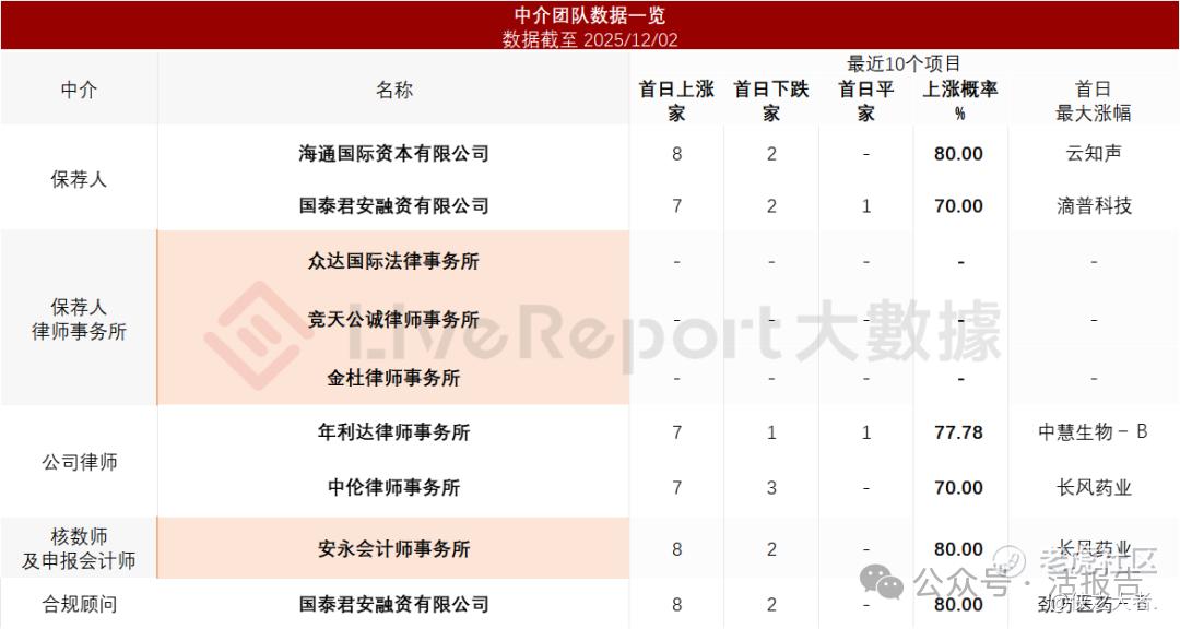 据**大数据统计,乐动机器人中介团队共计9家,其中保荐人2家,近10家保荐项目数据表现尚可;公司律师共计2家,综合项目数据表现稳妥。整体而言中介团队历史数据表现较好。