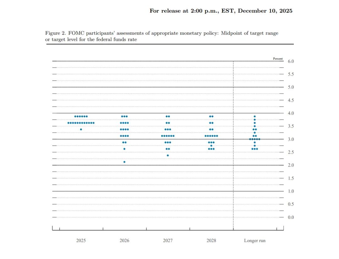 点阵图显示2026年仅预期再降25基点,反映出Fed在通胀黏性(核心PCE仍处3%附近)与就业市场降温之间的审慎权衡。