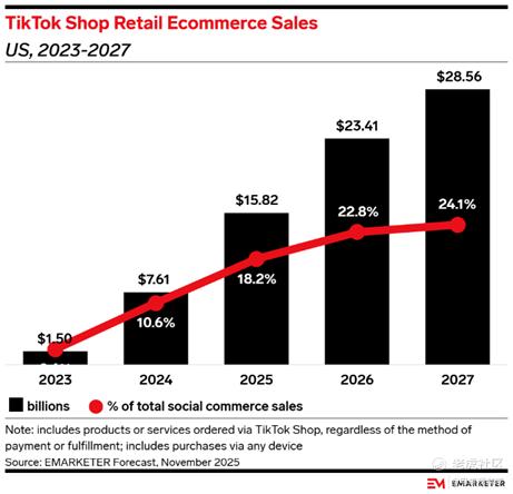 TikTok Shop 美国销售额 2025 年达 158 亿美元,有效撬动年轻群体社交消费市场