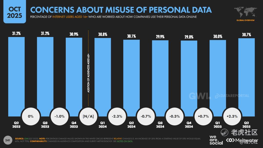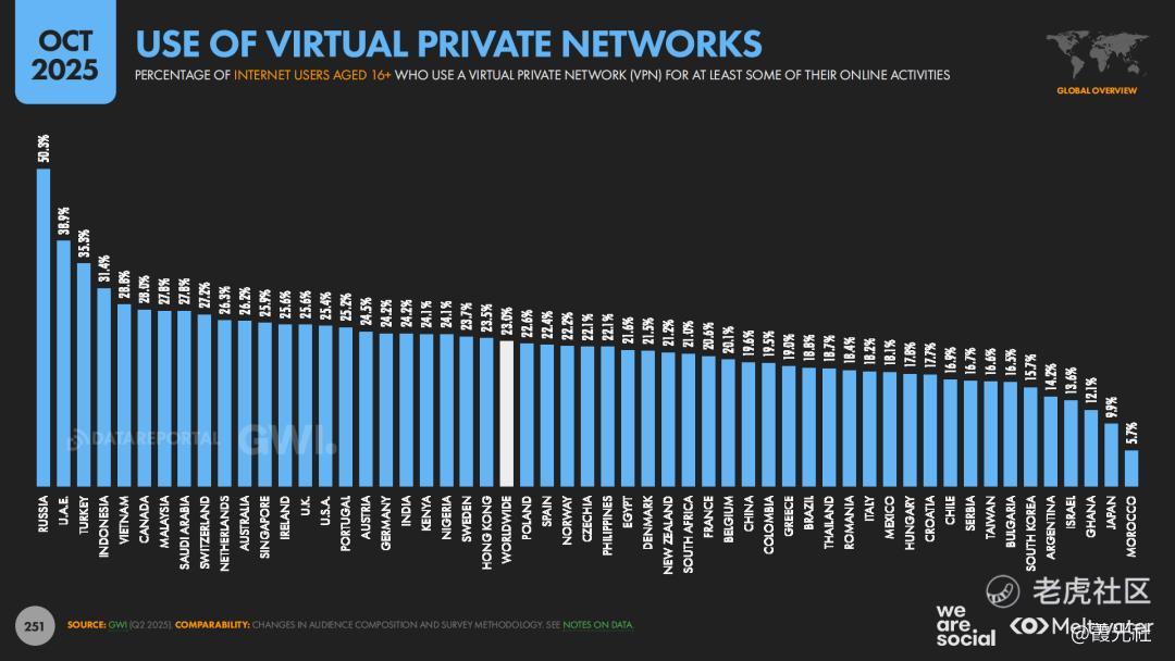 报告在隐私和数据部分呈现出一种全球共通的矛盾心态。一方面,约30.7%的用户明确表示担心企业滥用个人数据,“广告太多、跟踪太紧”是许多网民的真实感受;23%的用户使用VPN保护隐私,在俄罗斯、阿联酋、土耳其等国,VPN使用率尤其突出。另一方面,约37.8%的用户愿意“用数据换服务”,这意味着可以用个人信息让渡来能换取更顺畅的体验、更精准的推荐或更优惠的价格。