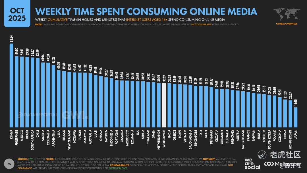 从用户侧看,互联网使用已经从“有没有”转向“怎么用”。整体规模上,全球互联网用户增速趋缓、渗透率接近平台期,但这并不意味着“数字化见顶”,而是意味着存量结构在重排——用户每天依然花不少时间在线,只是这段时间被切分给了不同的平台和场景。