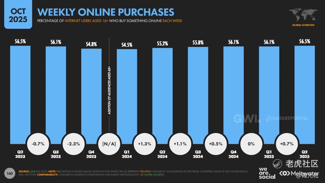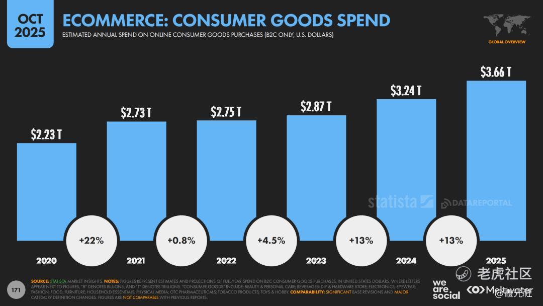 报告显示,全球B2C电商规模已达约3.66万亿美元,近两年年增长率约13%,每周进行网购的用户占比达到56.5%,“线上购物”在许多国家已经从“替代方案”变成日常生活的“默认选项”。