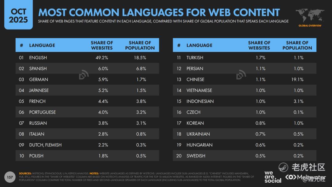 此外,报告还提醒了一个容易被忽视的维度:全球网页近半为英文,而英语母语人口不到两成。这意味着,在很多下沉市场,谁能更好地用当地方言讲故事、用本地语境表达价值,谁就更有可能在数字营销上占得先机。