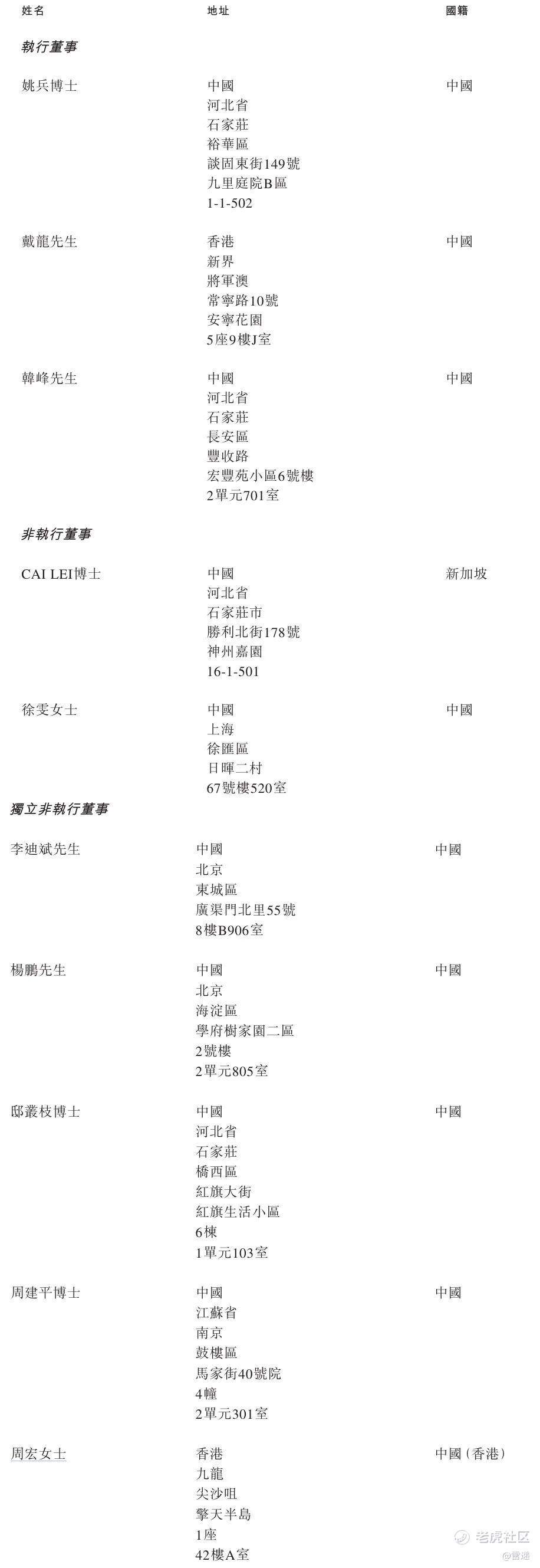 石药创新执行董事分别为姚兵博士、戴龙、韩峰;非执行董事分别为CAI LEI博士、徐雯女士;独立非执行董事分别为李迪斌、杨鹏、邸丛枝博士、周建平博士、周宏女士。