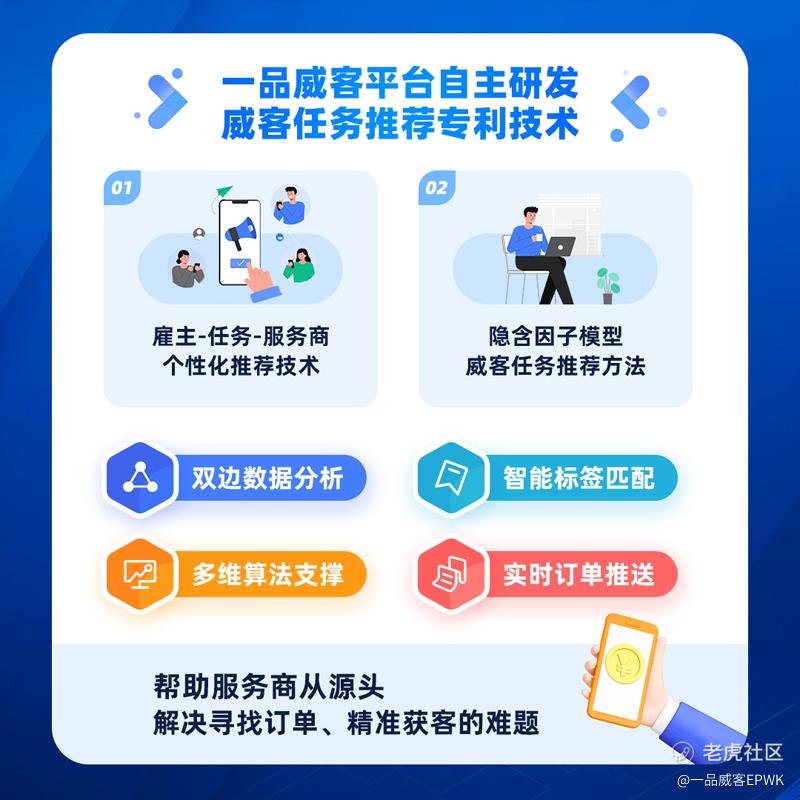在数字经济时代,区域资源不均衡仍是制约中小企业发展的关键瓶颈:一二线城市汇聚大量优质技术服务商,而三四线城市及县域企业却面临“找技术难、找好技术更难”的困境;同时,偏远地区的技术人才又因地域限制,难以对接优质需求。作为国内首家赴美上市的数智化创意交易服务平台,一品威客(纳斯达克股票代码:EPWK)构建起“弹性协作网络”,以个性化任务智能推荐引擎为核心纽带,打破地域壁垒,实现跨地域技术资源高效匹配,更通过全栈技术赋能,帮助众多中小企业跨越数字化转型“技术鸿沟”,让创意与技术在无界协作中迸发价值。双专利加持的AI推荐,破解地域资源困局传统技术服务模式中,企业往往局限于本地筛选服务商,若当地技术资源薄弱,要么被迫接受“低质高价”服务,要么承担高额差旅成本寻求外地团队,效率与成本难以兼顾。一品威客自主研发的“个性化任务智能推荐引擎”,成为应对这一挑战的关键支撑,而保障引擎高效运转的,是平台拥有的两项核心专利技术——“雇主-任务-服务商个性化推荐技术”与“隐含因子模型威客任务推荐方法”。