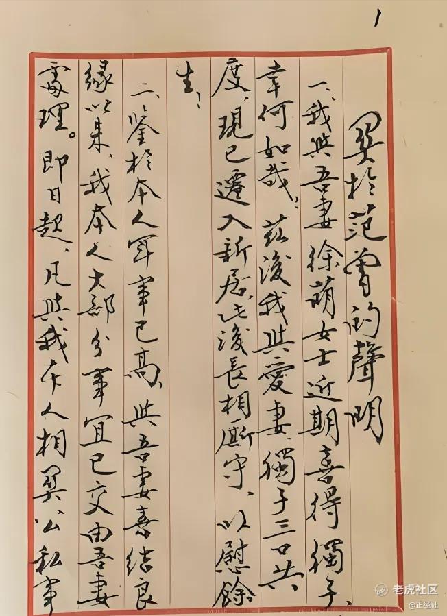 “我与吾妻徐萌女士近期喜得独子,幸何如哉!”细看声明,一开篇,老爷子就难掩喜悦,提及已与徐萌迁入新居,将“三口共度,长厢厮守”。同时明确,因年事已高,此后所有公私事宜均由徐萌全权负责,他人无权干涉。