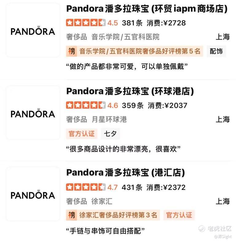 潘多拉在上海的部分门店位置 | 图片来源:大众点评
