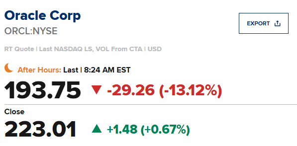 向下跳空:OXM -24.6%, ORCL -11.2%, TE -11.1%, URG -8.8%, IMVT -4.3%, GRI -4.1%, VCTR -2.9%, FIGR -2.6%, HIVE -2.2%, UVSP -1.9%, HOOD -1.6%, STC -1.5%, CHYM -1.5%, ISRG -1.2%, SERV -1.1%, AAOI -1.1%, AMSC -0.9%, NTRA -0.9%, GTE -0.9%, SNPS -0.8%