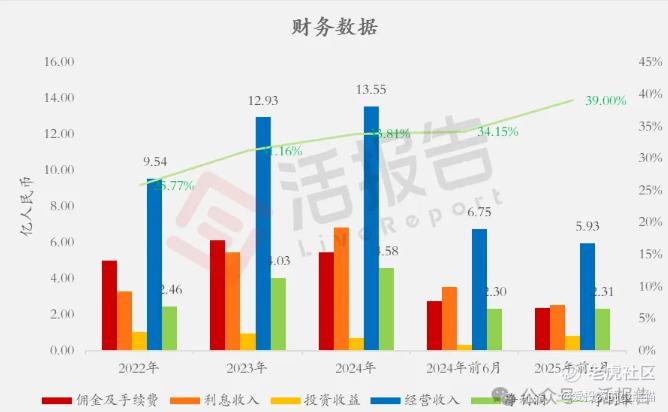 南华期货佣金及手续费分别约为人民币4.98亿、6.12亿、5.42亿、2.72亿、2.35亿,2025年前6月同比-13.88%;