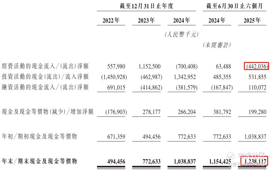 截至2025年6月30日,公司账上现金有人民币12.38亿元,经营活动现金流为-4.42亿元。