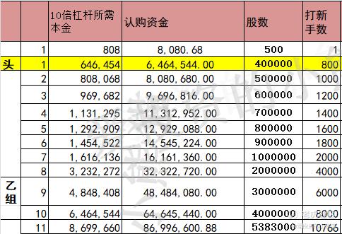 乙头需要认购资金647万,乙组的各档融资所需要的本金还有融资金额对应如下表: