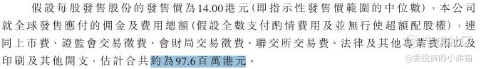 然后这个票招股书上按发售价的中位数14.00港元计算,公开的上市所有开支总额约为9760万港元,募资额约15.07亿港元,占比约6.48%,开支相比募资额算是比较少了。