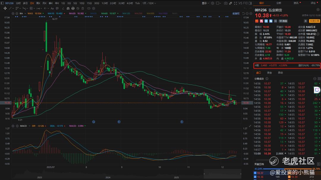 南华期货(603093.SH)A股最新价格(12月12日收盘)为19.30元人民币,H股发行信息发行价格区间: 12.00-16.00港元/股,H/A溢价为-44.04%至-25.39%,与同行弘业期货(001236.SZ)A股最新价格(12月12日收盘)为10.38元人民币,H股弘业期货(03678.HK)收盘价3.46港元,H/A溢价为-69.79%相比要低很多。