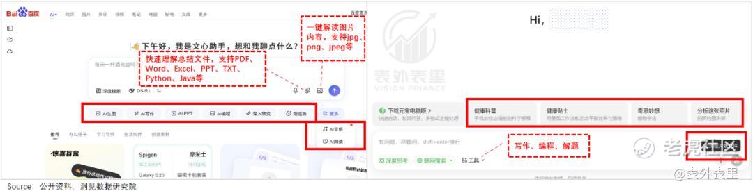 更何况,各家的功能也难分高下——要论流量和内容,百度有搜索引擎,元宝捆绑微信,千问有夸克浏览器、豆包背靠抖音,家家皆有一块根据地,且谁也无法做到打通。尤其是百度,多年来商业化对内容生态的打扰,此刻也像一颗子弹正中眉心。
