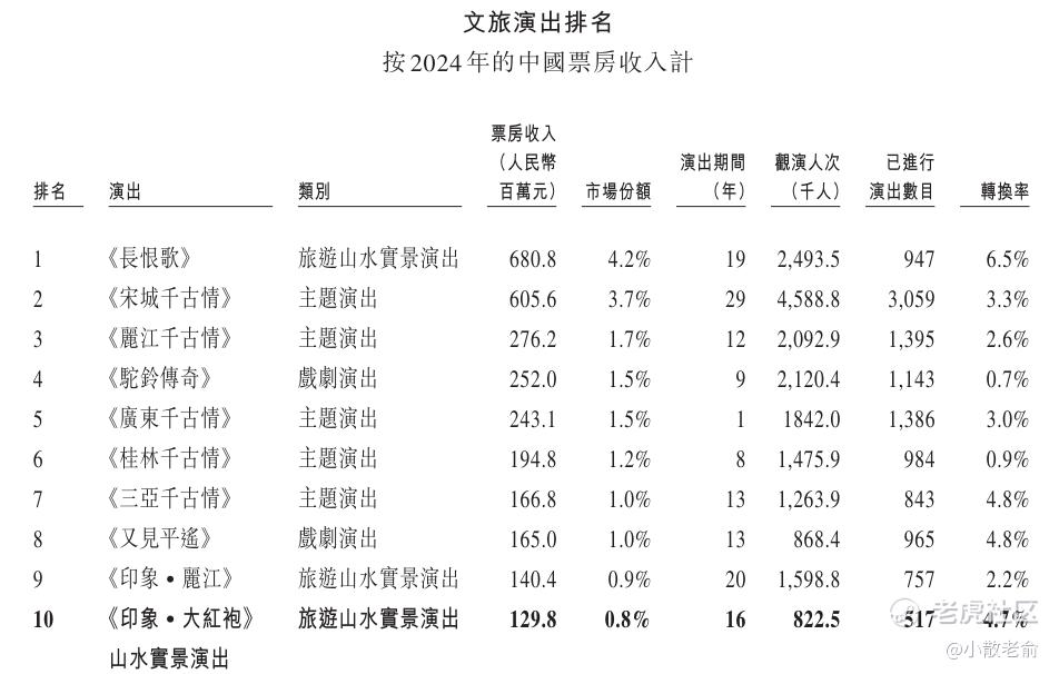 截至2022年、2023年及2024年12月31日止年度,《印象‧大红袍》山水实景演出的游客-观众转化率分别约为4.6%、6.7%及4.7%。于2024年,《印象‧大红袍》山水实景演出占文旅演出市场总额约0.8%,票房收入约为人民币129.8百万元,观众人数超过800,000人,同年所有武夷山游客的游客-观众转换率约为4.7%。此转换率超过行业平均约1.5%的游客-观众转换率。