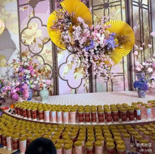 从流出的大婚照片可看出,男女双方身着中式礼服,以传统大红色与金色交相辉映。高海纯凤冠霞帔微笑示人,张俊杰同样一脸欣喜。尤其引人注目的是,在这场中式婚礼现场,摆放了很多杯霸王茶姬奶茶,数量之多,蔚为壮观。这场婚礼,显然成了一次霸王茶姬最好的广宣机会。