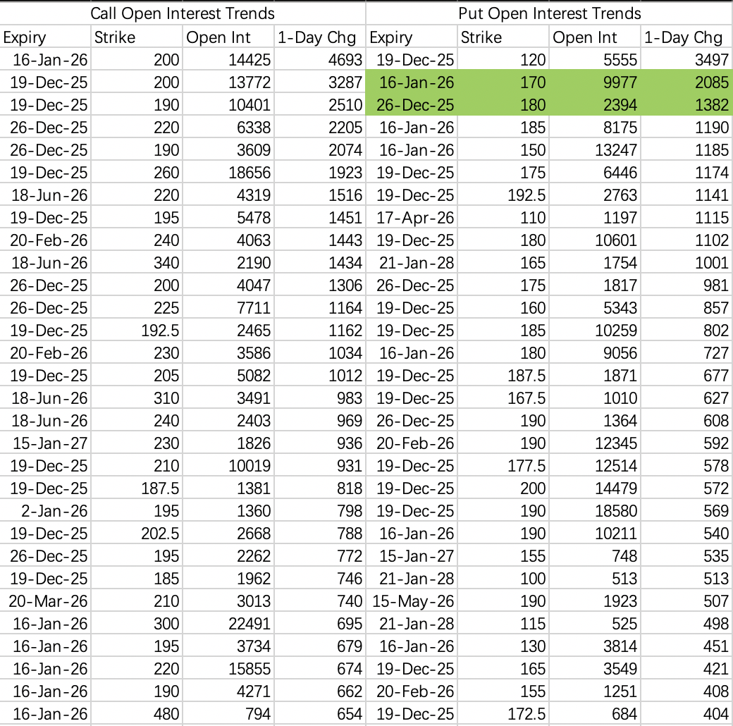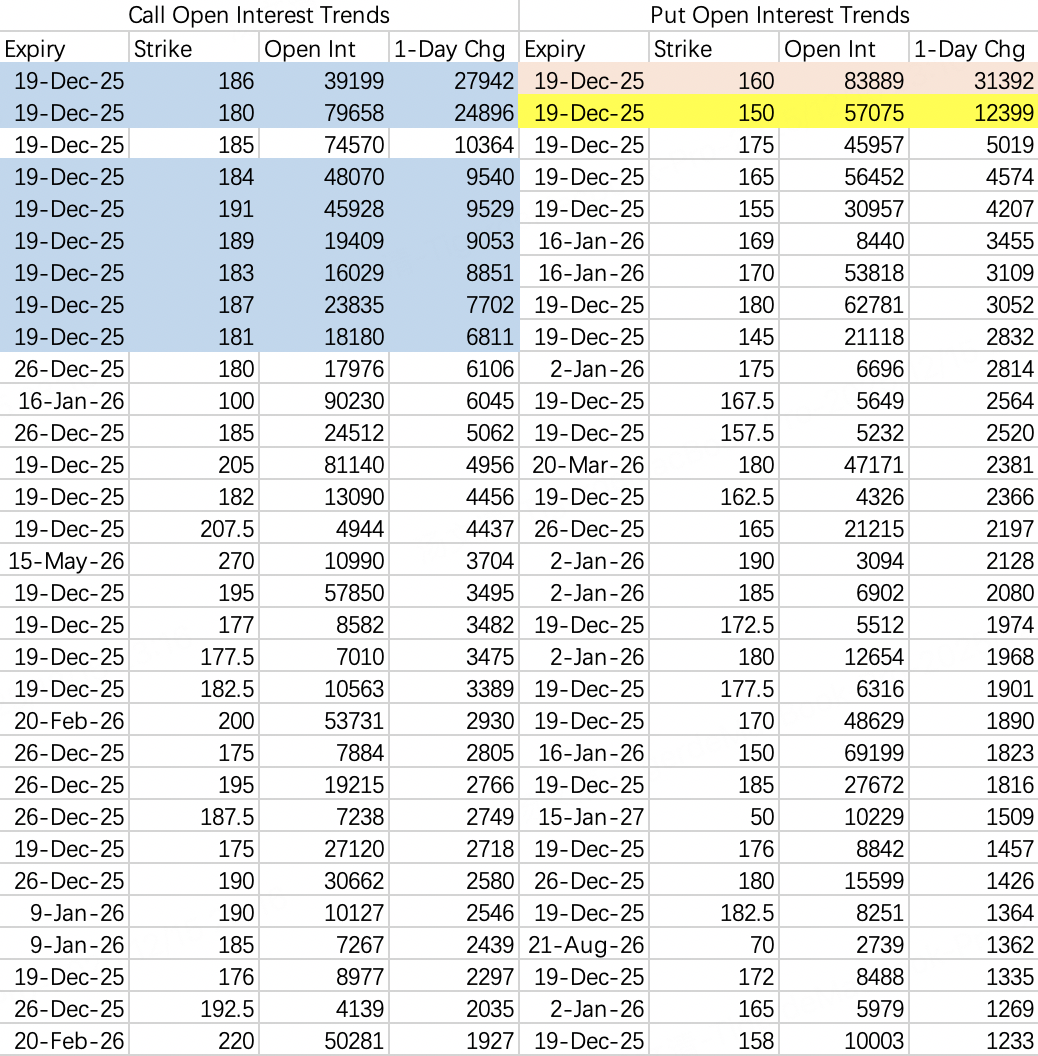 但大概率事件是股价先回调到170,不排除170以下,然后反弹。毕竟本周三巫日,170put和160put是重点斩杀线,下跌时极好的sell put机会,行权价可以选170或者165 $NVDA 20251219 170.0 PUT$ $NVDA 20251219 165.0 PUT$