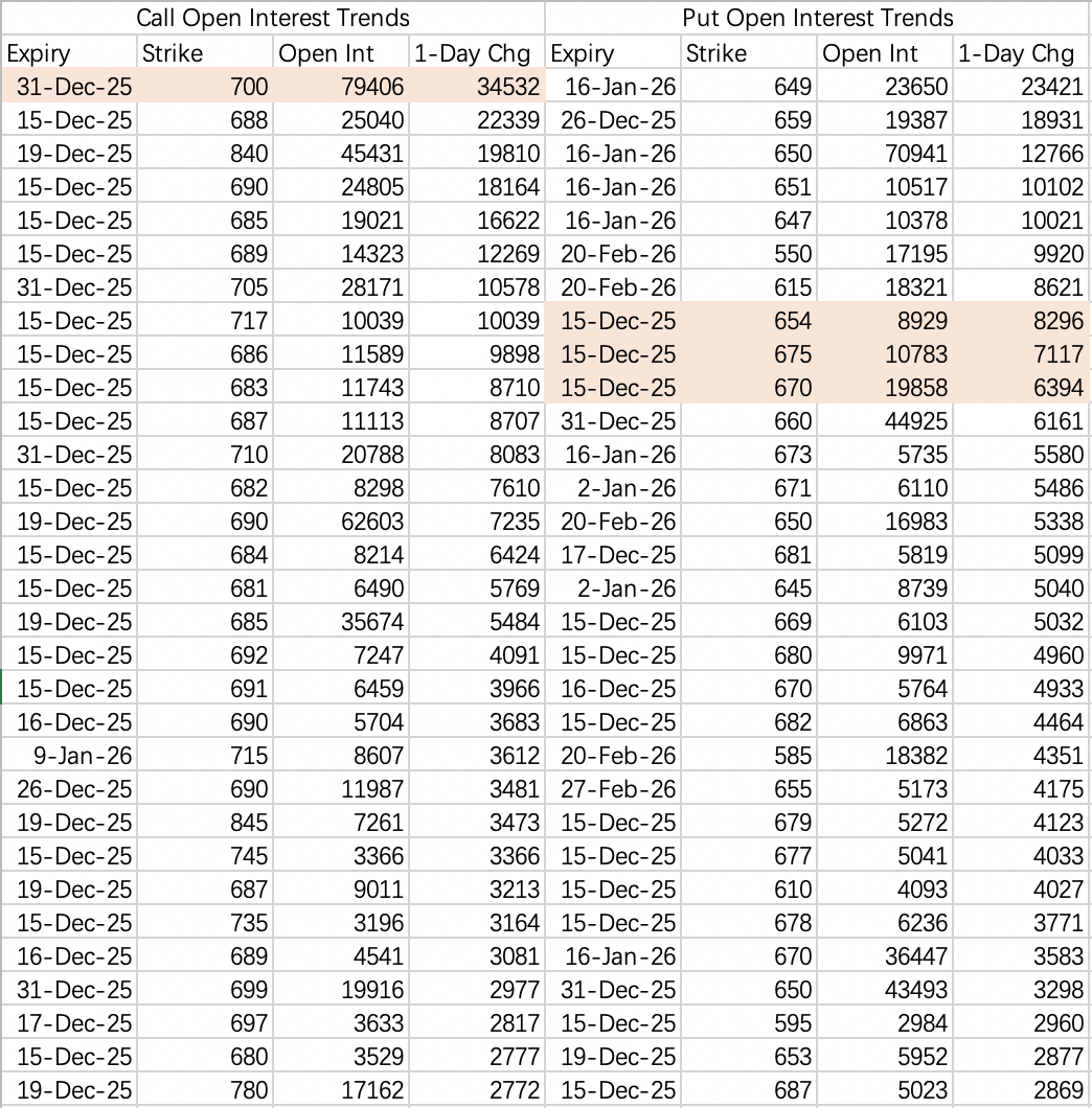 META可以考虑做600的sell put $META 20251226 600.0 PUT$ ,虽然跟其他高位高估值股票相比,meta风险更低,不过本周需要稳一手。