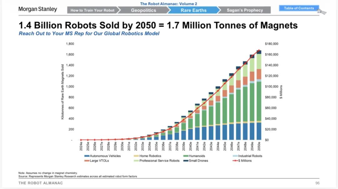 摩根士丹利134页重磅:2050年14亿机器人入场,中国稀土卡住全球脖子