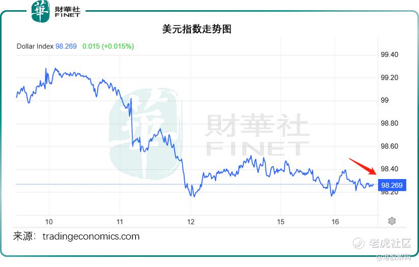 见下图,反映美元兑主要货币的美元指数呈弱,一直维持在98.3以下水平。