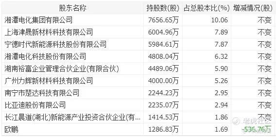 截至今年三季度末,宁德时代直接持有湖南裕能7.78%股份,位列第三大股东,并通过长江晨道间接持有1.86%股份;比亚迪直接持有湖南裕能2.94%股份,位列第八大股东。