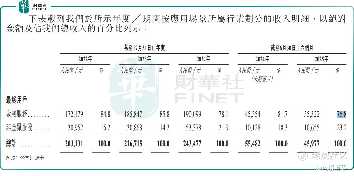 2025年上半年,公司来自金融领域客户的收入比重达76.8%,2023年曾高达85.8%。金融行业易受监管政策调整、预算缩减影响,这种单一行业依赖使得其难以跟上全行业多领域协同增长的步伐。